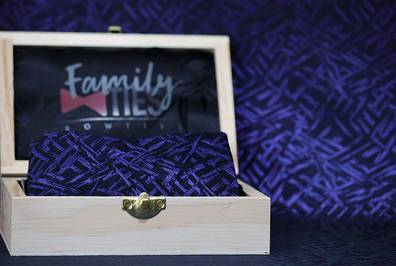 The Purple Rain tie brings an artistic feel to bow ties. The purple and black brush strokes bring the bow tie to life. This Armani Silk and wool blend is one of the finest fabrics to accessorize with. The Purple Rain bow tie comes with a gun metal clasp.