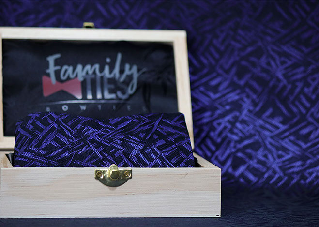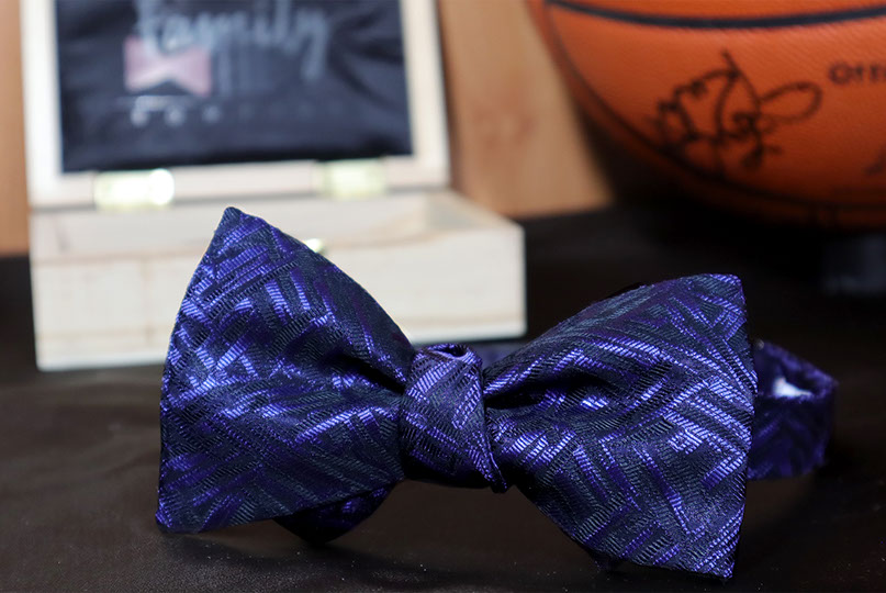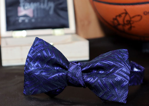 The Purple Rain tie brings an artistic feel to bow ties. The purple and black brush strokes bring the bow tie to life. This Armani Silk and wool blend is one of the finest fabrics to accessorize with. The Purple Rain bow tie comes with a gun metal clasp.
